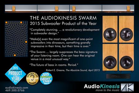 The Swarm received The Absolute Sound Editors Choice award for 2015, 2017, and 2019 in Subwoofer category. Golden Ear awards 2015, 2018 and 2019.